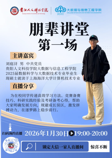 从学业拔尖到学科竞赛领跑,从科研深耕到考研上岸,刘庭浔学长用一路的拼搏与坚持,走出了一条清晰且坚定的成长之路。无论你是想优化学习方法、冲击学科竞赛,还是计划深耕科研、备战考研,这场讲座都能为你带来启发与力量!