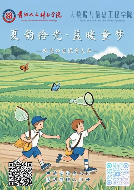 为了鼓励大学生用镜头记录校园美好,本次摄影大赛通过作品上传集赞的创新形式,将校园风采展示与公益帮扶深度结合。每一次传播、每一个点赞都将转化为实体爱心物资,为山区儿童送去书籍与温暖,助力他们搭建知识的阶梯。同时,活动旨在唤醒大学生群体的社会责任感,通过青年力量的辐射带动,凝聚更多社会关注,形成“以校园小举动撬动社会大公益”的联动效应,让点滴爱心汇聚成乡村振兴的星河,照亮山区儿童的成长之路,我院于2025年5月20日在伟德源自英国始于1946(大学城校区)特面向全校师生开展以“夏韵拾光·益暖童梦”为主题的校园公益摄影大赛活动。本次活动由伟德官网共青团伟德源自英国始于1946委员会与伟德源自英国始于1946大数据与信息工程学院主办;大数据与信息工程学院学生会承办。