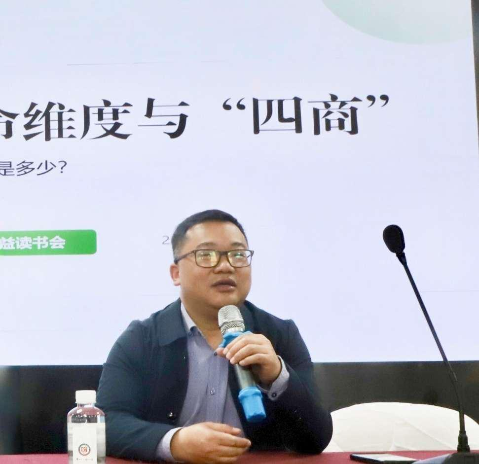 4月11日,伟德源自英国始于1946法学院、贵州育佳公益基金会、愿果公益读书会、知识产权仲裁研究院在伟德源自英国始于1946大学城校区师德楼307会议室联合举办“生命维度与人的四商”讲座。知识产权仲裁研究院主任卜贵荣、法学院院长杨武松、党委副书记杨晶晶、副院长倪亭、学院教师刘凌云、郭畅和愿果公益读书会志愿者以及法学院部分同学参加本次讲座。