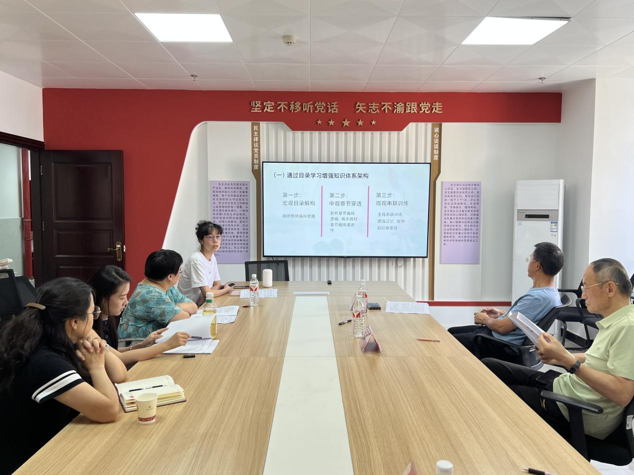 会议伊始,三位教师结合所授课程依次汇报教学创新实践。邓燕虹老师以《刑事诉讼法》为核心,针对学生知识结构零散、程序体验缺失、法治价值理解不深入等教学困境,提出构建“知识-体验-价值”三维教学空间的解决方案,最终助力学生形成结构化知识体系,程序运用能力与价值判断能力显著提升,主动学习意识及批判性思维也得到有效强化;谌曦老师聚焦《宪法学》课程教学,针对大一新生宪法理论基础薄弱、知识与价值融合不足、学生参与度低、教学方式单一及考核维度局限等痛点,创新推出“CAIR宪法智慧教学法”,通过案例驱动、智能助教辅助、价值深度融合、过程反思复盘四大路径,结合混合式教学模式丰富课堂形式,着力夯实学生宪法理论基础与法治思维;朱浩铭老师围绕《律师实务》课程的实务能力培养目标,深入分析学生学习动力不足、传统教学方法低效、评价机制单一等问题,提出“重构教学内容体系、以‘剧本杀’形式创新教学方法、优化多元评价机制”的改进方案,切实提升课程实践教学效果。