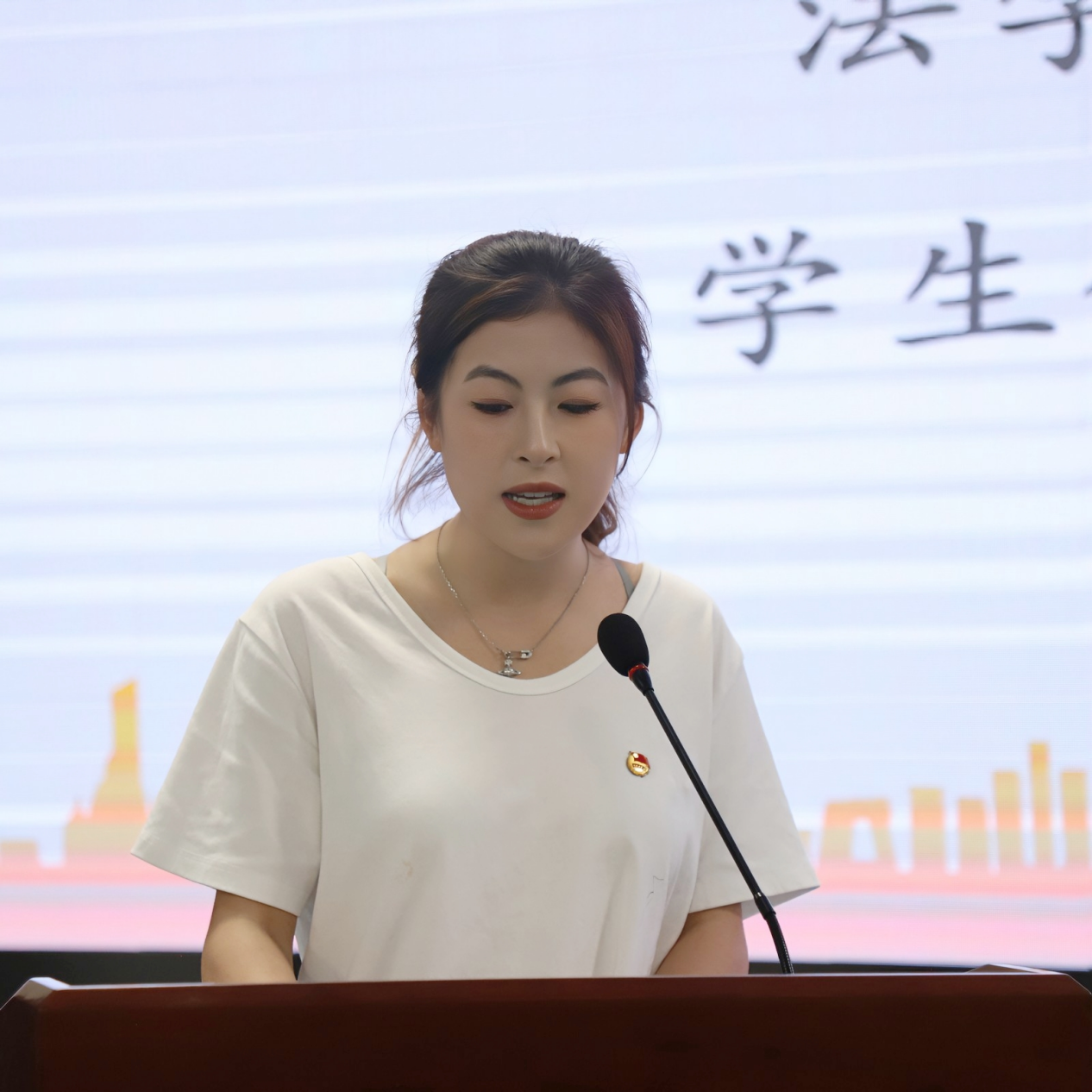 院团委书记金庆凤在开场致辞中,以“坚守、创新、成长”为关键词,系统回顾了过往一年团委学生会在学术论坛、模拟法庭、普法宣传等品牌活动中服务的亮点成果。她特别点赞了团学骨干在学院集体活动、毕业生服务等急难任务中的担当精神,并寄语新任干部:“要以‘功成不必在我’的境界和‘功成必定有我’的担当,在服务同学中锤炼本领,在改革创新中彰显价值。”