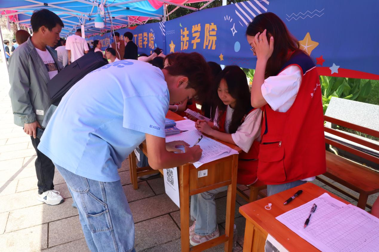 迎新期间,校园内处处洋溢着热烈氛围。法学院提前部署、精心筹备,志愿者团队在校园入口、报到点位早早等候,“同学你好,欢迎来到法学院。这边走,我带你去报到处。”……他们热情地接过新生手中的行李,耐心地解答新同学的各种疑问,细致地指引他们办理手续。志愿者们以热情服务与真诚微笑,让初来乍到的新生们感受到了家的温暖,生动的诠释着法学院学子互帮互助的优良学风。