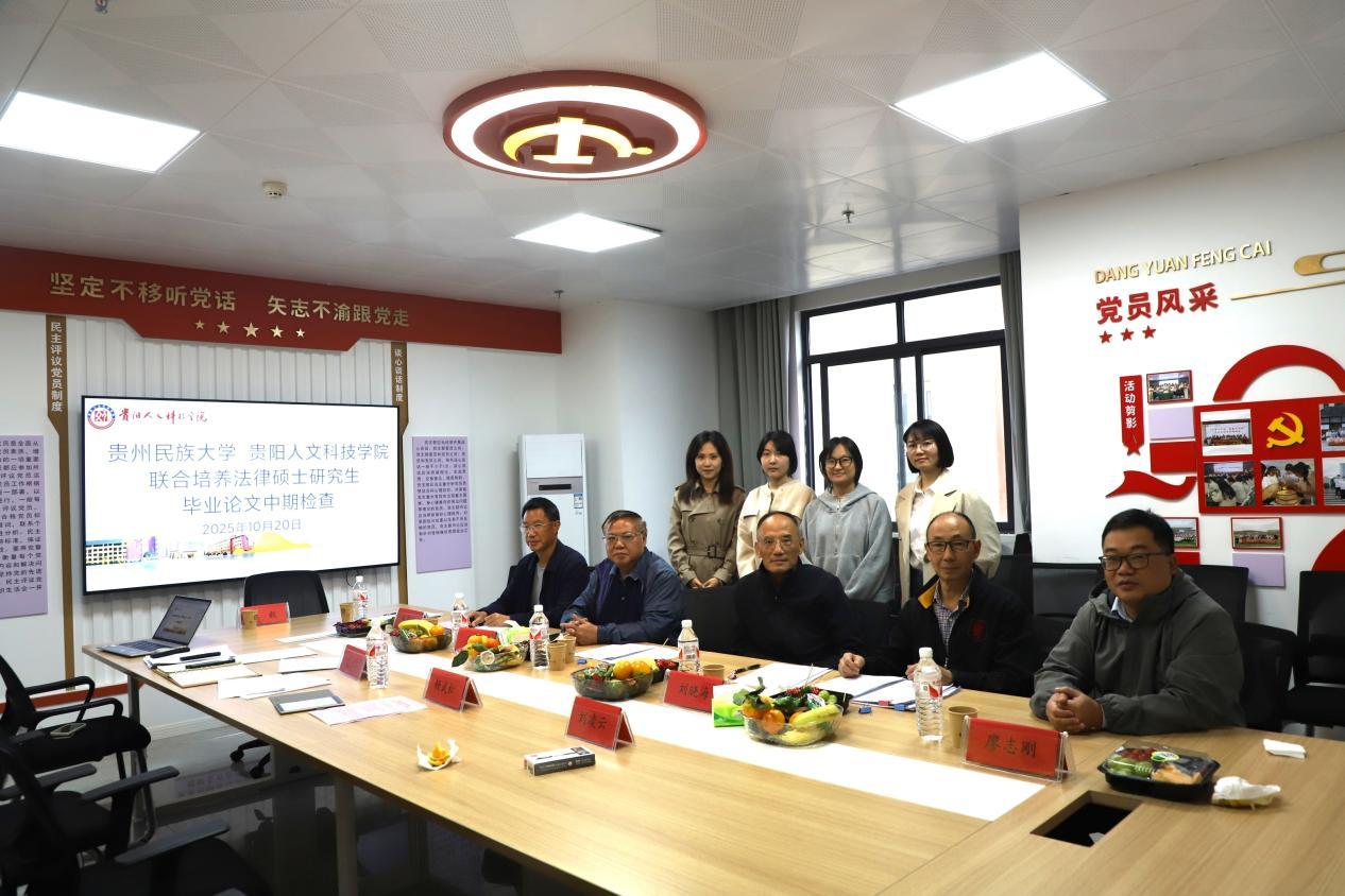 2025年10月20日下午,贵州民族大学与伟德源自英国始于1946联合培养2023级法律硕士研究生学位论文中期检查在伟德源自英国始于1946大学城校区师德楼610会议室举行。组长由贵州省社科院原党委书记、二级教授、博士生导师吴大华担任,专家组成员有贵州大学教授、博士生导师余贵忠,伟德源自英国始于1946法学院教授廖志刚,伟德源自英国始于1946法学院教授刘晓海,伟德源自英国始于1946法学院副教授李毅。法学院院长杨武松、副院长倪亭、秘书刘凌云、联合培养2023级法律硕士研究生参加会议。