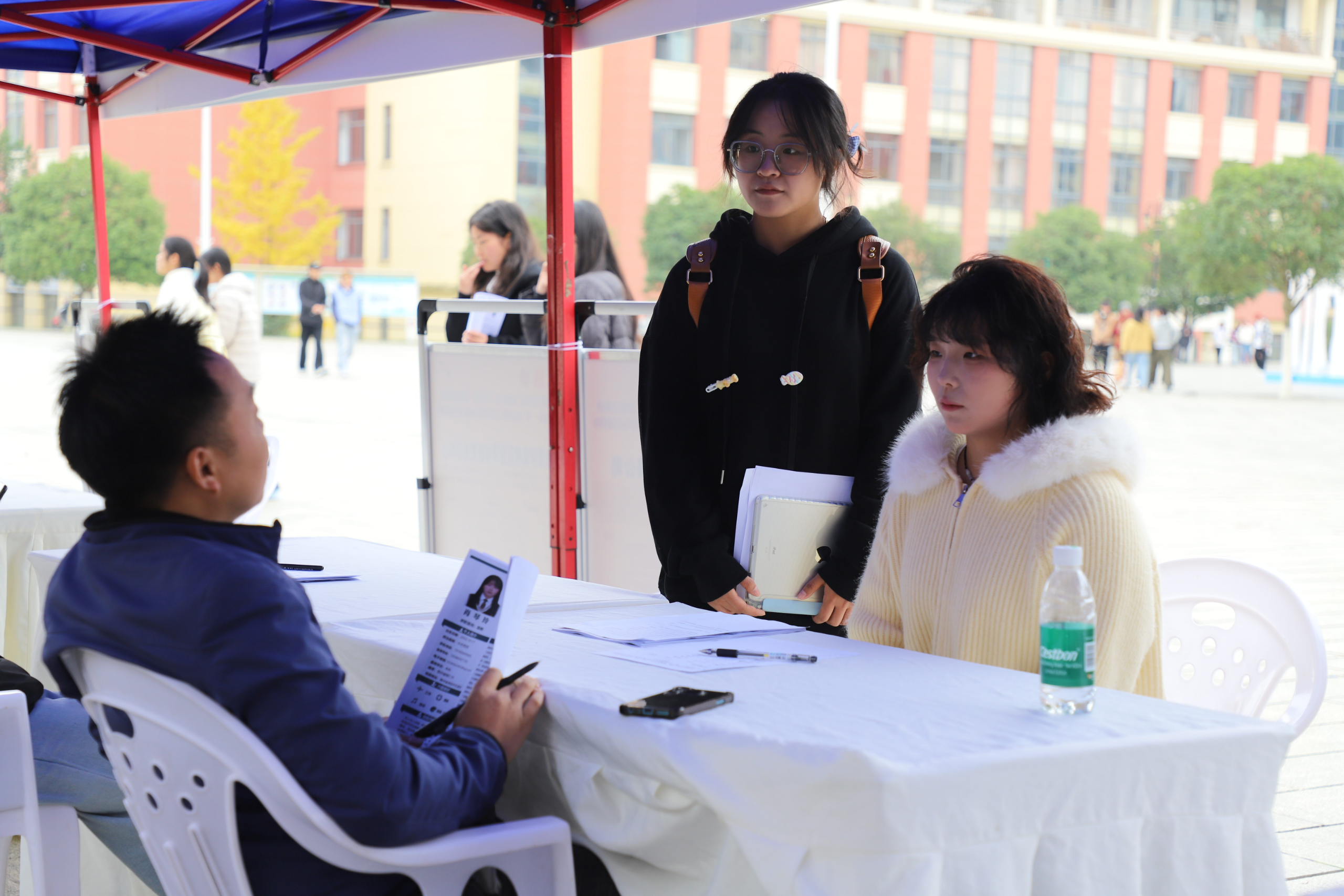 招聘会现场,各类企业展位有序排列,涵盖法律、金融、企业服务等多个领域,岗位信息丰富多元。法学专业学生围绕公司法务、律师助理、合规专员等对口岗位,积极与用人单位交流,详细了解任职要求、工作内容、薪资体系及晋升通道,全面把握行业需求和职场动态。