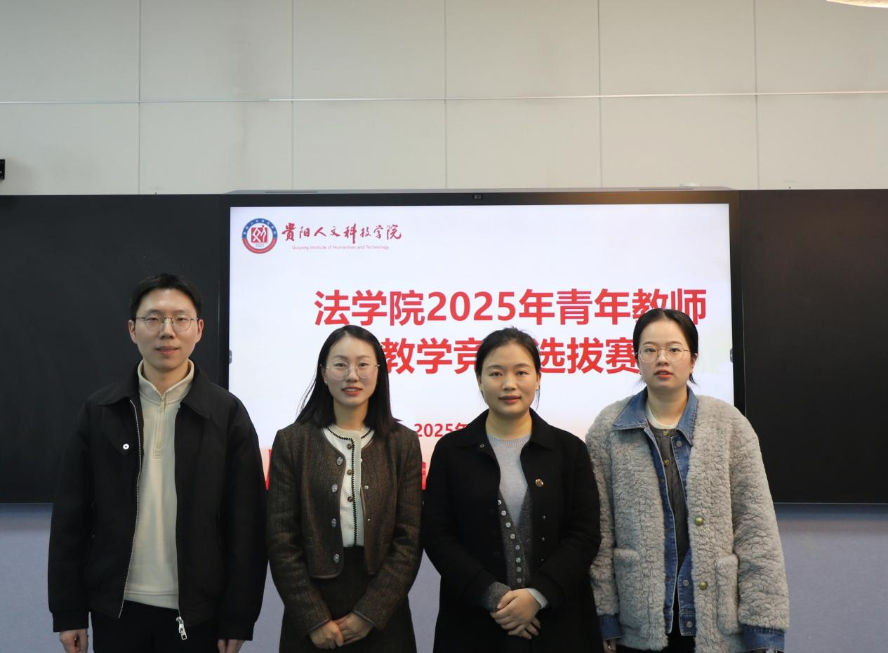 为促进青年教师专业成长,提升教学能力与课堂质量,2025年11月25日下午,贵人文科技学院法学院在师德楼201智慧教室成功举办了青年教师教学竞赛选拔赛。本次竞赛由李毅博士主持,法学院全体专职教师参加,现场气氛热烈,学术氛围浓厚。