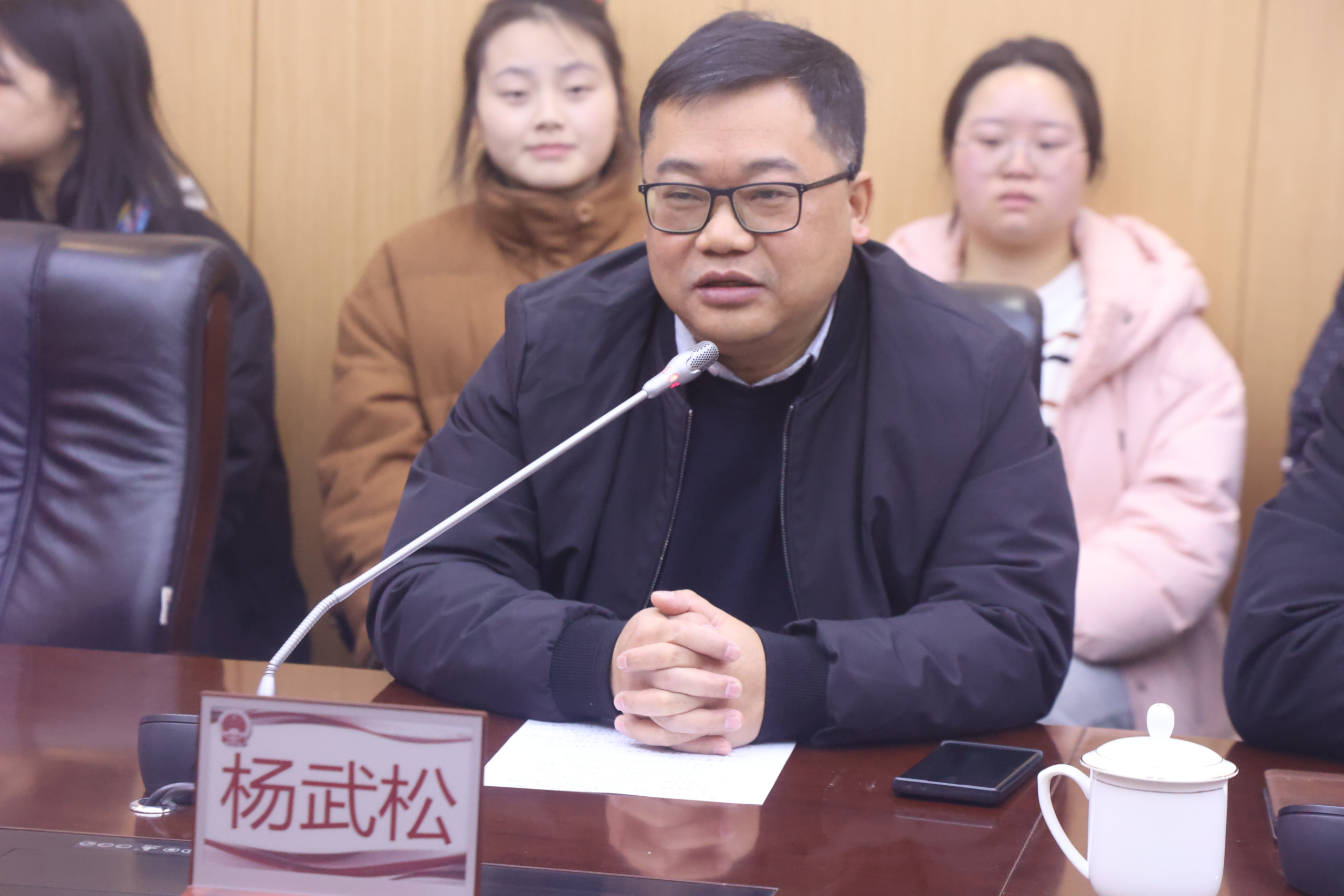 杨武松院长在讲话中衷心感谢修文县人民法院对实习工作的大力支持。他指出,法学教育的生命力在于与司法实践的深度融合,此次实习不仅提升了学生的专业能力,更强化了他们的职业认同与法治信仰。他表示,学院将持续优化人才培养体系,推动课程内容与实务需求对接,完善“双导师制”,并积极探索实习与就业衔接机制。未来,法学院将与修文县法院携手深化合作,在共建实践基地、共育师资队伍、共研实务课题等方面拓展路径,共同打造校院协同育人的典范,为地方法治建设输送更多高素质应用型人才。