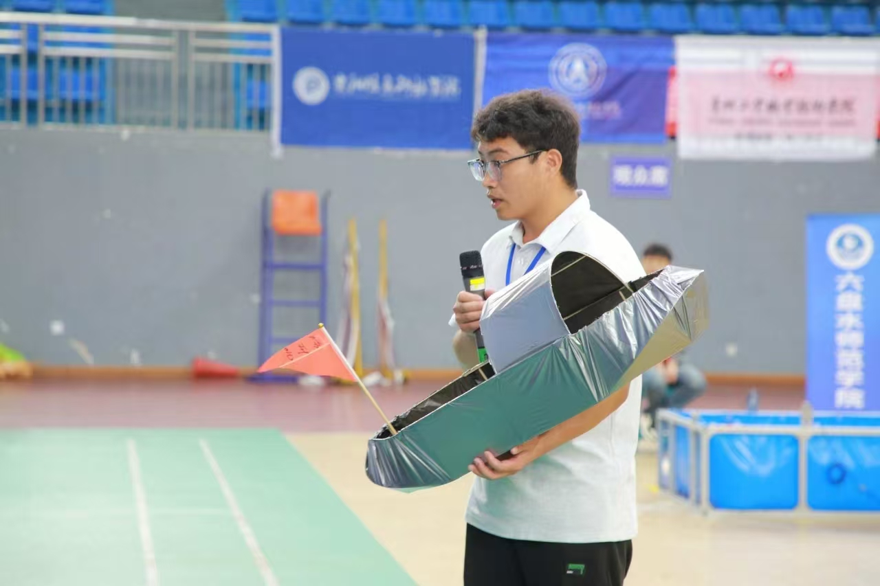 本届赛题“抗浪抗撞乌篷船”要求同时攻克结构、防水、动态稳定性三大难关,淘汰率高达70%。伟德官网指导老师争对其特点指导我们的选手在优化船体流线结构、提升抗撞性能的同时,精准平衡载重与航行能力,全面检验学生的结构力学分析、材料创新应用及跨学科实践能力。最终土木工程专业熊珊、李观、魏志立三位同学组成的队伍“扬帆起航”,以总分第一名成为本届赛事的“破浪者”,自重仅71.3克,却扛住了17kg的加载!