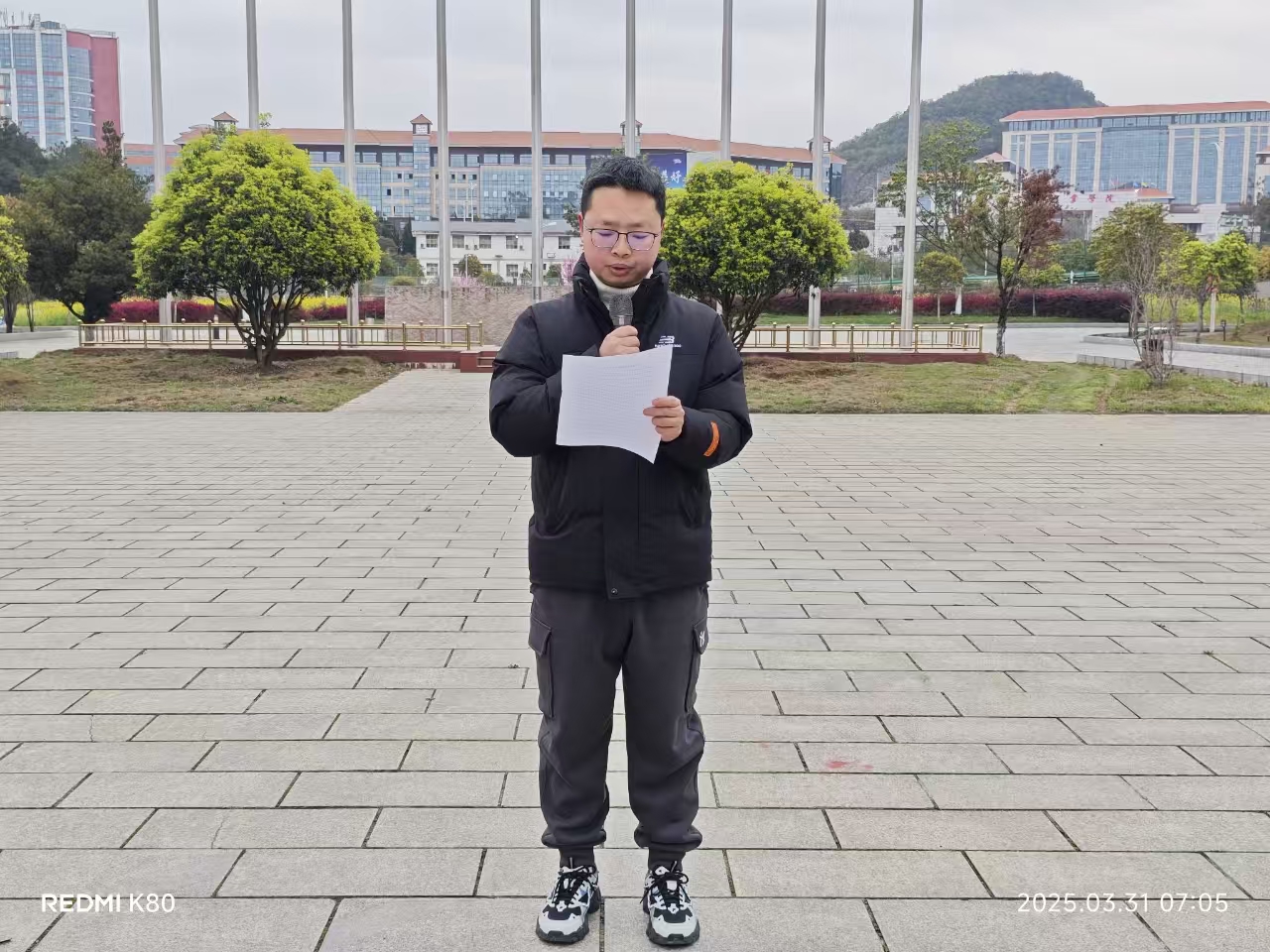 接着,张益老师在国旗下发表讲话,着重强调了国家安全教育的重要性。他明确指出:“作为新时代的大学生,我们应深入学习国家安全相关的法律法规,确保自己能够了解法律、遵守法律、尊重法律;积极参与学校安排的国家安全教育活动,主动掌握国家安全知识,提升自身的安全意识和防范技能,以具体行动巩固国家安全的防线,承担起时代赋予我们青年的责任,为实现中华民族伟大复兴的中国梦贡献出自己的力量!”