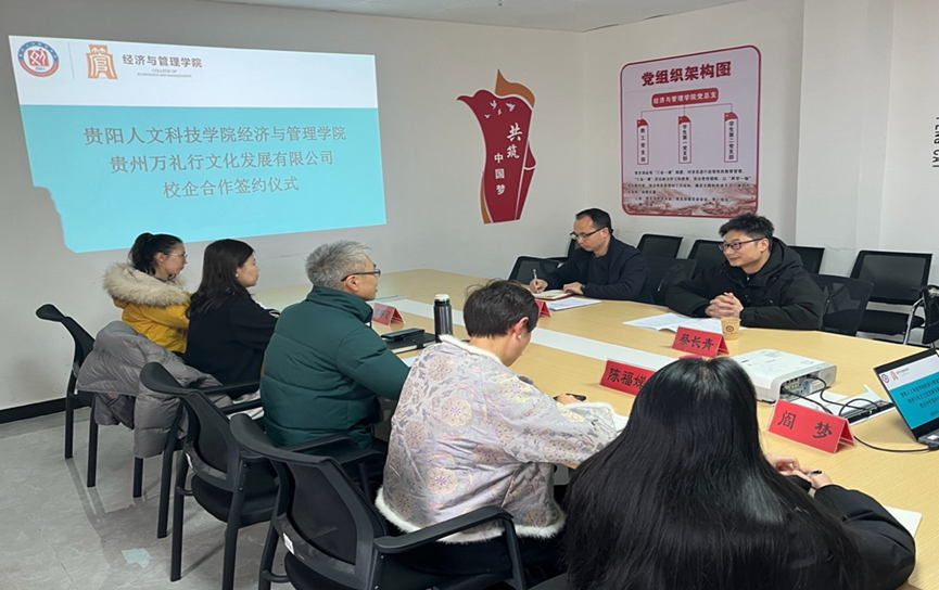 10月25日,学院与贵州万礼行文化发展有限公司举行了校企合作签约仪式。此次合作构建了产教融合的桥梁,设立了“红色农产电商营销实习实践基地”,为高素质技能人才的培养以及地方产业的发展增添了新的动力。贵州万礼行文化发展有限公司董事长吴世国、贵州万礼行长征文产馆副总经理蔡长青,学院院长董延安、副院长陈福娣、电子商务及市场营销教研室全体教师共同参加了签约仪式。