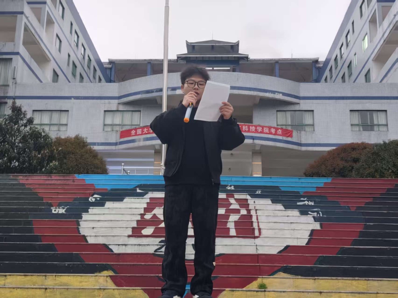 升旗仪式后,学生代表2025级市场营销1班王小石同学在国旗下发表讲话。他从雷锋的平凡善举讲到新时代青年在脱贫攻坚、抗疫一线的“螺丝钉”精神,深刻诠释了伟大源于平凡的坚守。