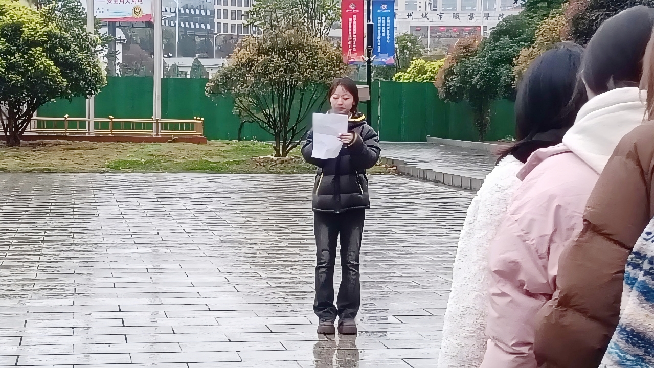 学生代表杨慧婷同学作国旗下讲话。她认为,作为新时代青年,虽无需奔赴沙场、止戈息战,但更应心怀家国、守望正义,把对和平的珍视化作刻苦学习的不竭动力,把对祖国的热爱化为砥砺前行的坚定勇气。要以青春之我、奋斗之我,努力成长为有理想、有本领、有担当的新时代青年,用知识武装头脑,用品格涵养情怀,用实力捍卫尊严,以实际行动守护祖国长治久安。