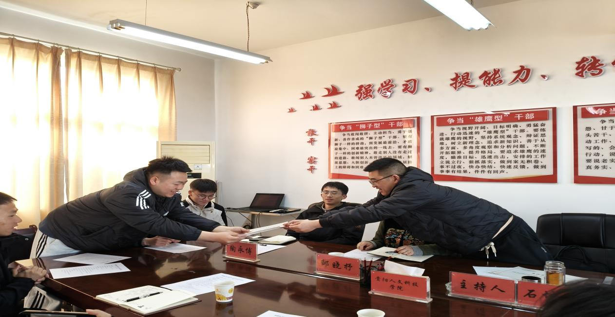 会议来到尾声,石坤文镇长在总结中向实习生送上祝福:“基层是青春的练兵场,愿大家带着燕楼镇的经验,在未来的道路上脚踏实地、行稳致远。”随后,石镇长亲自为实习生们颁发“优秀实习生”荣誉证书。