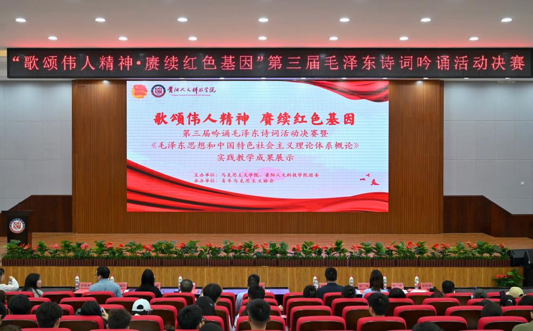 2025年6月6日,“歌颂伟人精神·赓续红色基因”第三届吟诵毛泽东诗词活动暨《毛泽东思想和中国特色社会主义理论体系概论》实践教学成果汇报在教职工之家隆重举行。活动由马克思主义学院和校团委联合主办,旨在通过毛泽东诗词的艺术演绎,深化大学生思想政治教育,传承红色基因,弘扬伟人精神。党委常务副书记陆官虎、马克思主义学院院长周剑云、文学与新闻传播学院院长钟旭等七位专家担任评委,全校师生代表500余人现场观摩。