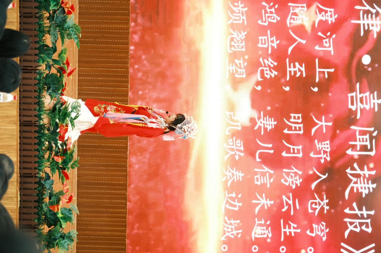 活动在雄壮的序曲中拉开帷幕。马克思主义学院院长周剑云致开幕辞,他指出,毛泽东诗词是时代精神的火炬,吟诵毛泽东诗词是思政课实践教学的创新载体,将理论转化为生动实践,引导学生感悟毛泽东思想的核心价值。历经复赛56支队伍的激烈角逐,最终12支优秀团队脱颖而出进入决赛,以多样化形式展现诗词魅力。表演融合传统与现代元素:既有激情澎湃的“唱歌+诵读”演绎《沁园春·长沙》,展现“指点江山,激扬文字,粪土当年万户侯”的豪情壮志;又有创意十足的“演剧+诵读”诠释《七律·长征》,重现红军长征的坚韧精神;还有京剧唱腔结合剧本的创新编排,彰显了《五律·张冠道中》《五律·喜闻捷报》所蕴含的在艰苦环境中的坚定意志和对历史的深刻思考。丰富多彩的节目赢得掌声不断,现场洋溢着浓厚的红色文化氛围。