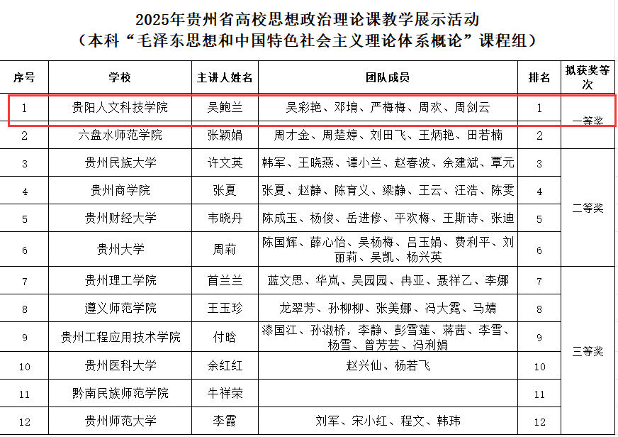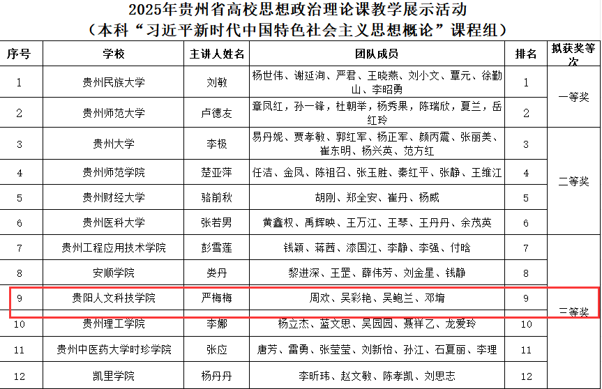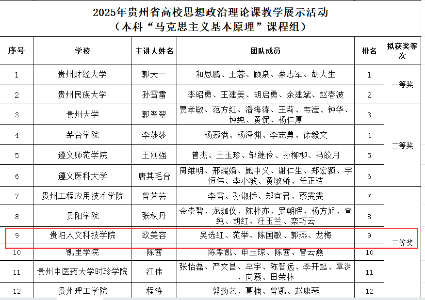 7月31日,贵州省教育厅公布了第四届全国高校思政课教学展示活动贵州省初赛获奖结果及拟推荐参加全国展示活动的名单。伟德官网思政课教师团队在激烈竞争中脱颖而出,斩获1项一等奖、2项三等奖的优异成绩,不仅成为本次大赛中获奖数量最多的民办高校,更充分展现了伟德官网思想政治理论课建设与改革的显著成效。