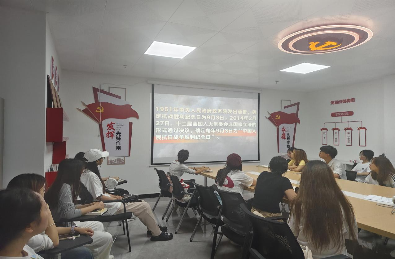 我院学生第一党支部和学生第二党支部分别组织党支部正式学生党员、预备党员、第七期及第八期入党积极分子在师德楼305会议室和师德楼910会议室开展活动,活动由各党支部书记主持。活动依托思政大课栏目大学课程“大国担当”节目,通过历史影像、专家解读、人物访谈等形式,系统回顾了中国人民抗日战争的起点、历程与伟大胜利,强调了中国战场作为世界反法西斯战争东方主战场的关键地位和巨大贡献,深入阐释了以爱国主义为核心的伟大抗战精神。