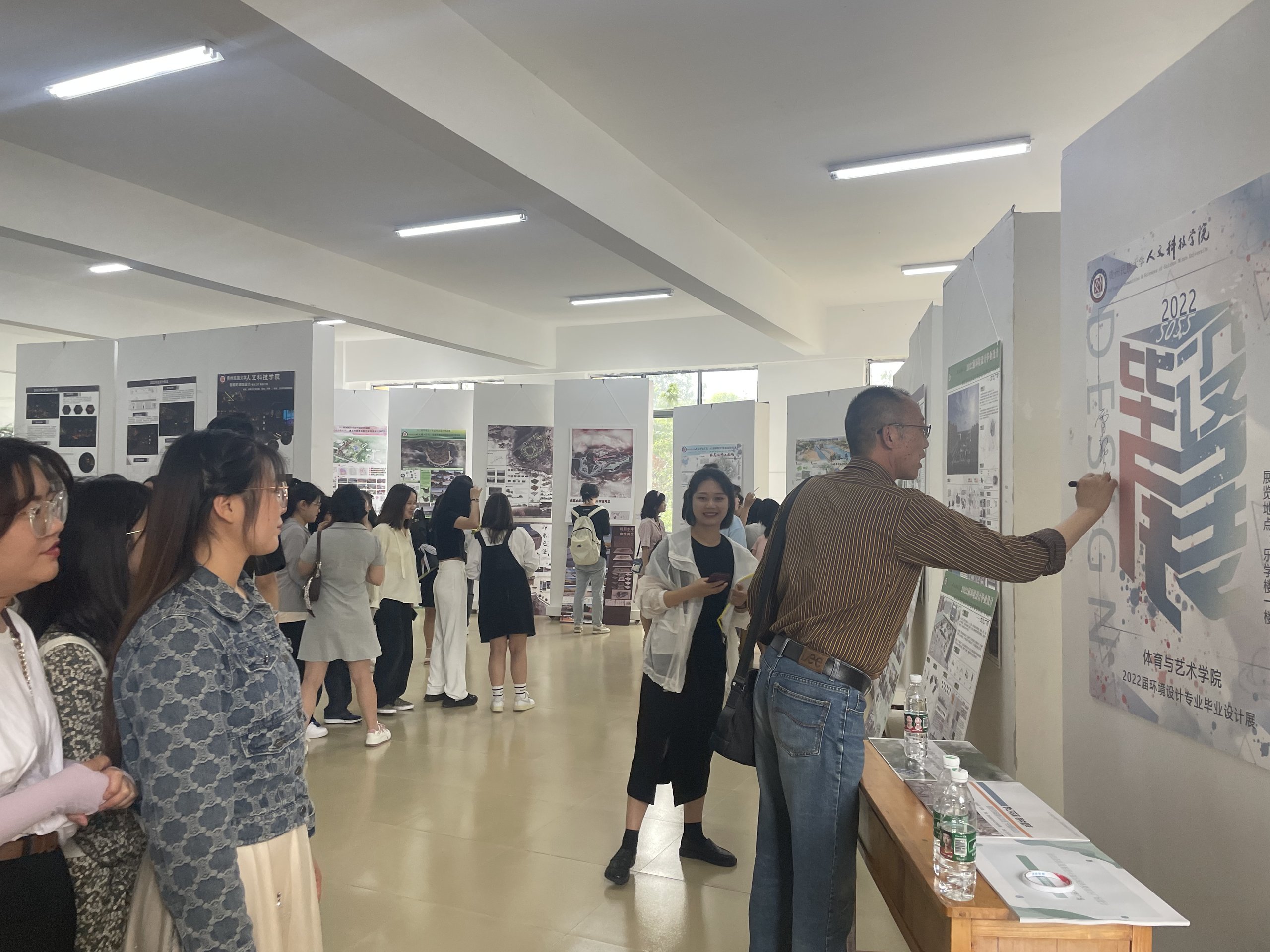 体育与艺术学院院长雷帮齐为学生毕业展签名留念