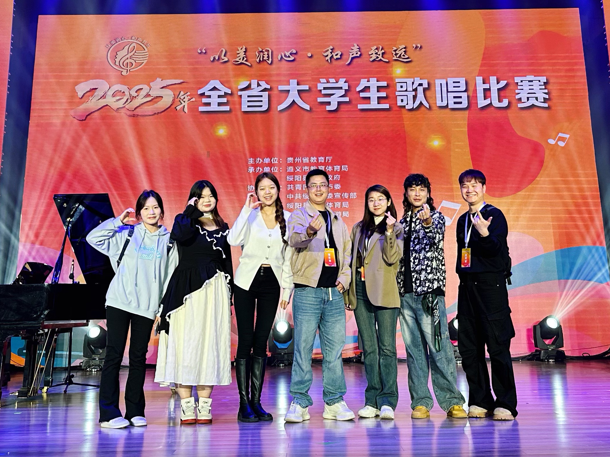 5月27日,由省教育厅主办的 “以美润心,和声致远”2025 年全省大学生歌唱大赛决赛于遵义绥阳圆满收官。这场汇聚全省高校音乐人才的顶级赛事,分设本科组与专科组,涵盖美声、民族、通俗三大专业唱法赛道,为音乐学子搭建了绽放艺术光芒的舞台。