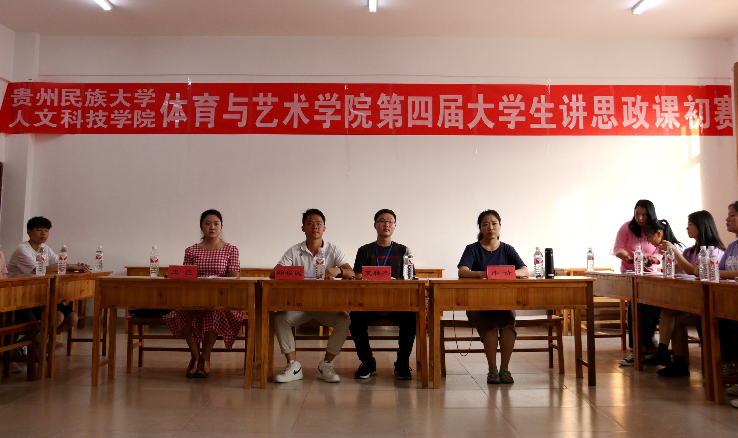 为切实加强学生对思政课的获得感,鼓励支持大学生发挥积极性、主动性、创新性,认真学好思政课、学会讲思政课。2020年9月1日18:00,体育与艺术学院在修身楼410教室开展“绽放抗疫青春·决胜全面小康”第四届大学生讲思政课初赛。我院团总支负责人支胜杰、学生党支部书记邓程民、辅导员孙诗,专业教师王应担任本次初赛评委。