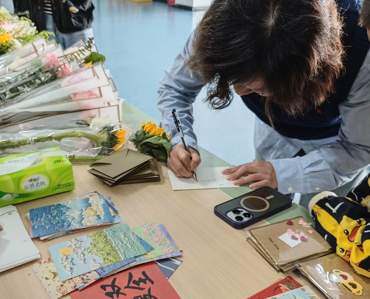 活动现场,常务副校长黄玮和现场的老师们为楼宇毕业生一起送去毕业纪念品和毕业祝福。
