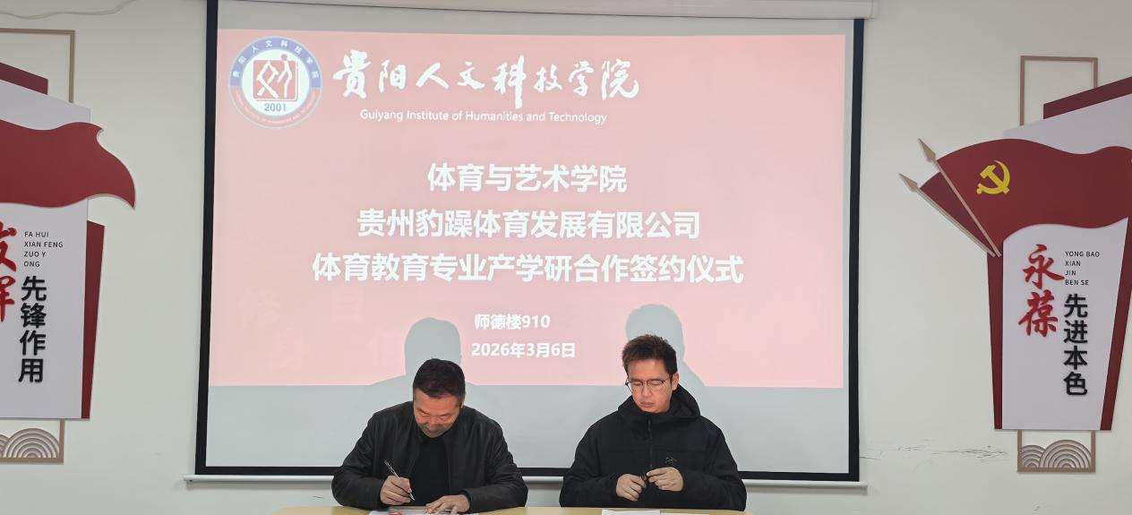 为深入贯彻落实“访企拓岗”促就业专项行动,深化产教融合,拓宽毕业生就业渠道,2026年3月6日上午,体育与艺术学院在师德楼910会议室成功举办贵州豹躁体育发展有限公司专场招聘会,并举行产学研合作签约仪式。