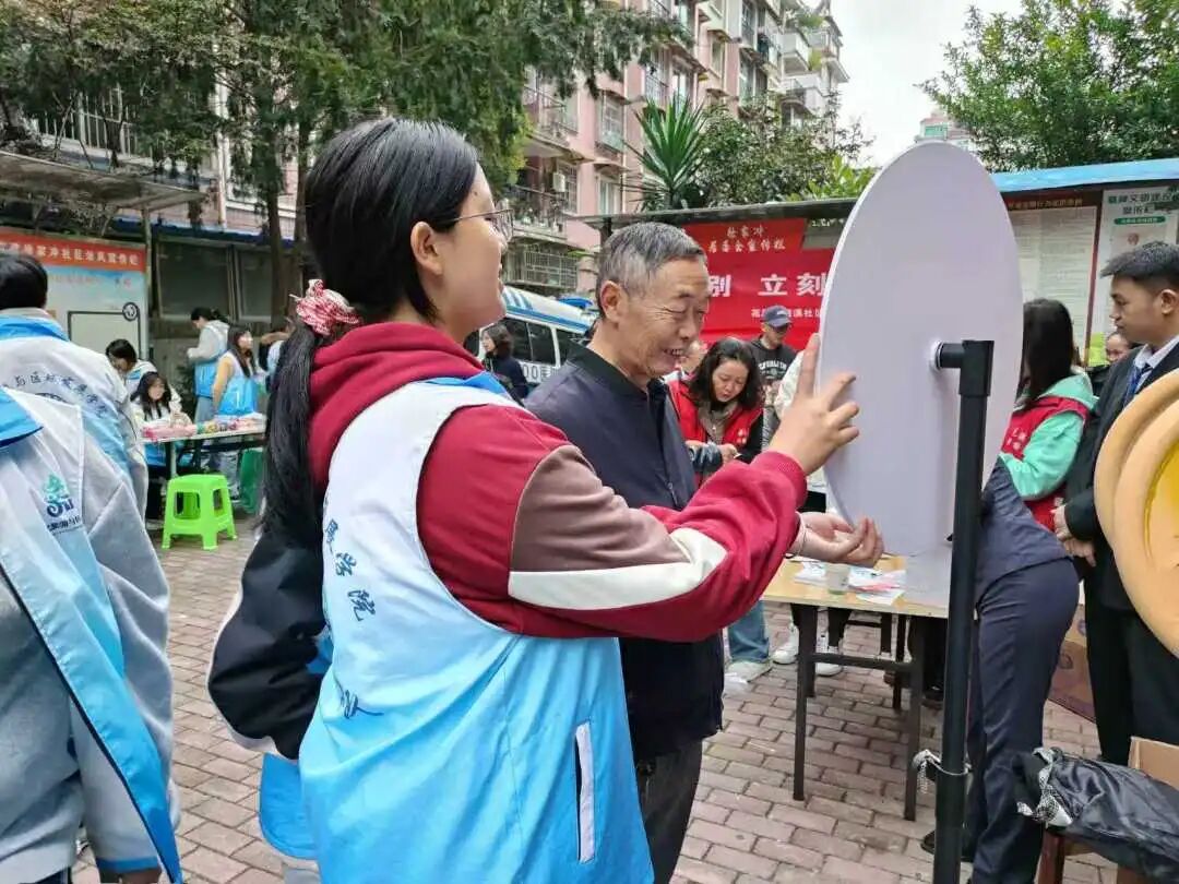 活动中,我院学生志愿者协助专业医护人员对老年人开展免费体检项目,涵盖血压、血糖测量及基础健康评估。医护人员还针对老年病预防和冬季养生等问题进行一对一答疑,提供个性化健康建议,全面守护老人身体健康。