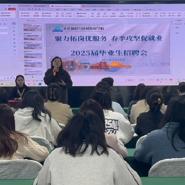为拓宽学生就业渠道,打通求职信息壁垒,搭建应届毕业生与用人单位交流平台。3月27日,我院在师德楼307会议室举办以“聚力拓岗优服务 春季攻坚促就业”为主题的2025届旅游管理专业毕业生就业招聘宣讲会。四川亚泰盛世国际旅行社、贵州风情国际旅行社、贵美控股集团、大成精舍、安顺黄果树开元名都度假酒店5家行业优质企业应邀进校揽才,通过“宣讲+招聘”一体化模式,搭建校企双向对接平台。
