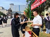 学校党委书记陆官虎为同学发放毕业礼
