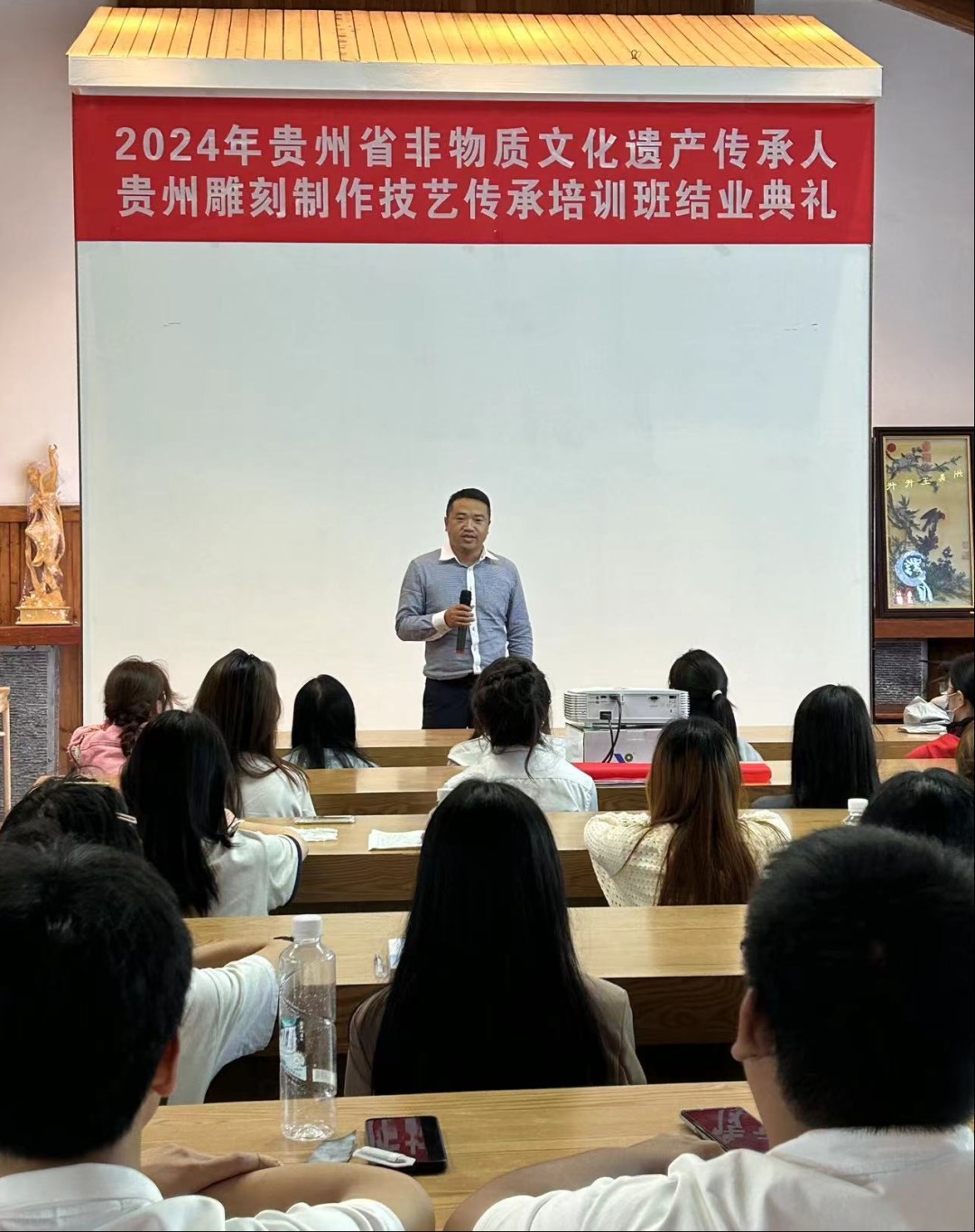 通过这次培训让我院师生更加了解非遗的基本理论,增进师生对非遗文化的认识与理解,提升了贵州雕刻制作技艺的知识及技能,是我院积极探索“大师进课堂,学生进工作室”的实践教学模式的创新举措,也是非遗专业师生一次宝贵的人生经历。