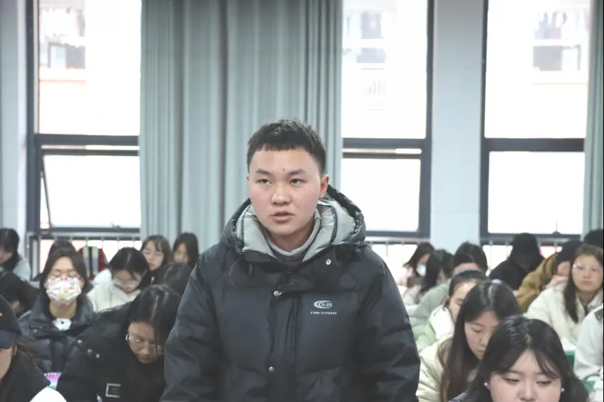 文学与新闻传播学院学生第一党支部书记吴彩艳领学 (王鑫琪 摄)