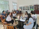 吴文君老师、王新鹏老师与嘎多小学的校长、老师的沟通交流