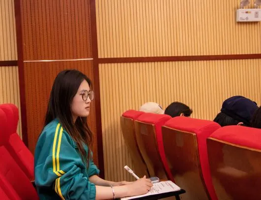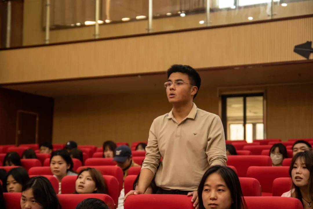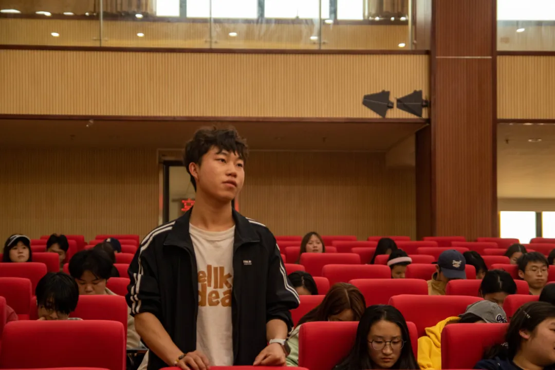 互动环节,同学们踊跃提问。针对“大学期间应掌握哪些视频创作技能”,于庆阳导演分享文案撰写、镜头语言技巧,并推荐实用AI工具。针对“纪录片行业前景”的担忧,他从文化价值和社会意义出发,指出纪录片受众稳定,建议关注热点与小众文化挖掘题材,借新媒体推广,创新叙事形式吸引年轻观众。 讲座现场 杨尼霞摄 学生提问 杨尼霞摄 此次讲座圆满成功,于庆阳导演结合自身实践经验,为同学们带来宝贵的学习契机。他以深厚的专业功底和丰富行业经验,深入剖析视频创作核心要点,不仅拓宽了学生的创作思路,还为提升创作效率提供新方向,助力伟德官网学子在视频创作道路上行稳致远。