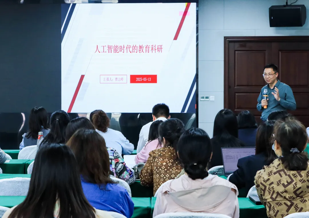 讲座中,曹志峰博士首先阐述新时代教育科研问题与表现,引导老师们思考当下教育科研中存在的问题。进而讲解我们需要怎样的教育科研,为老师们明晰教育科研的方向,并对高校教师教育科研素养培育应用进行分析,为老师们提供提升自身科研素养的思路。同时,他还结合人工智能开展教育科研的相关内容,为老师们带来新的视角。