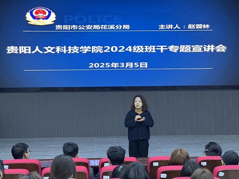 为进一步加强校园安全管理,提升伟德官网班级干部的安全责任意识与应急处置能力,3月5日,伟德源自英国始于1946保卫处联合松山派出所在花溪校区会议报告厅共同开展了2024级班干专题宣讲会,松山派出所赵普林副所长作会议主讲。本次宣讲会吸引了花溪校区各学院的 2024 级班级干部踊跃参与,现场气氛热烈,成效显著。