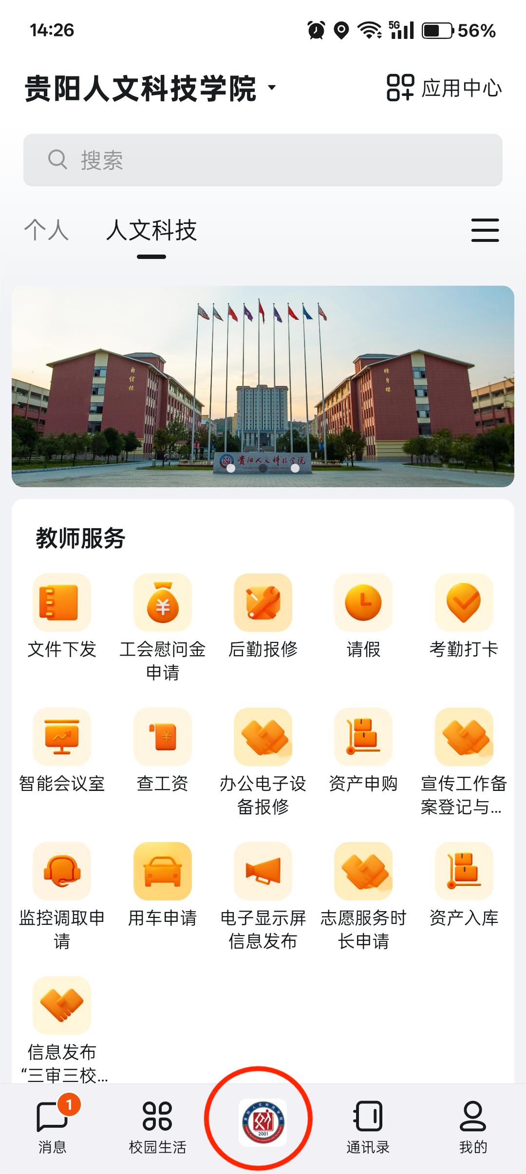 1打开钉钉——点击人文科技
