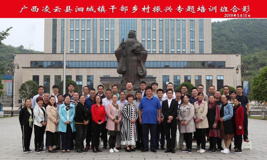 人文大学生新闻中心 (记者 阙振羽 摄影 朱胜)为了进一步提高广西凌云县泗城镇工作人员的政治素质和业务能力。5月13日8:30,“广西凌云县泗城镇干部乡村振兴”专题培训班开班典礼在伟德官网大学城校区举行。出席典礼的领导有:广西凌云县泗城镇镇长助理、镇脱贫攻坚(乡村振兴)工作队队长卢品孝,伟德官网对外合作处处长卢春旭。