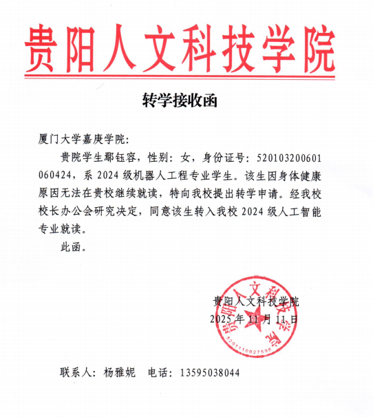 经学校研究决定,同意鄢钰容同学转入伟德官网学习。现予以公示。