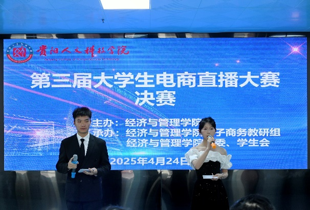 2025年4月24日,经济与管理学院主办的第三届大学生电商直播大赛在师德楼307报告厅成功举办。大赛以“青春逐光,播向未来”为主题,分为“直播竞技”与“路演复盘”两大环节,10支参赛团队同台竞技,全面展现新时代电商人才的创新思维与实践能力。活动由学院电商教研室、团委及学生会联合承办,吸引了师生120余人现场观摩。