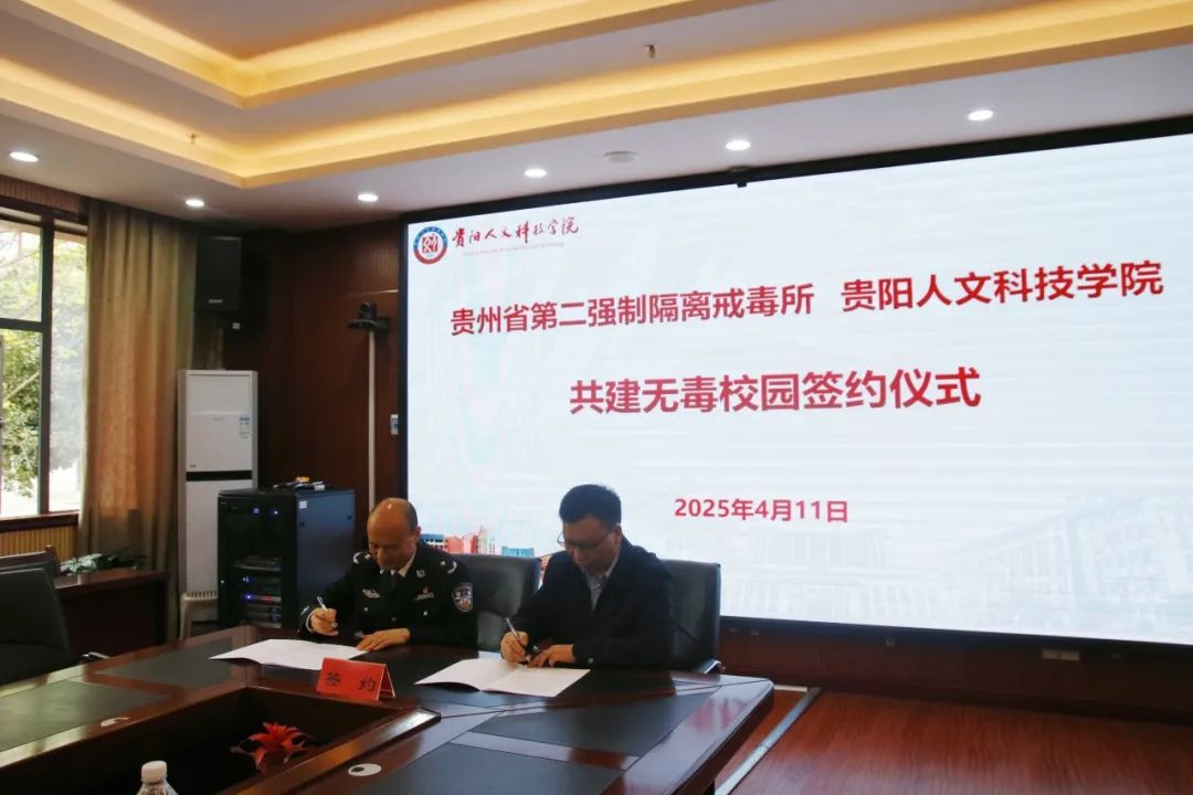 禁毒宣传教育活动开始前,贵州省第二强制隔离戒毒所同伟德官网签订了“合作共建无毒校园”合作协议。伟德官网党委常务副书记陆官虎、贵州省第二强制隔离戒毒所党委书记、所长周志平分别介绍了双方基本情况,就合作事宜达成意向。