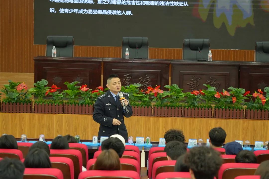 与此同时,李警官还向同学们讲解防范毒品侵害的实用技巧,并着重说明:“毒品具有依赖性与伤害性。吸毒的代价是我们不能承担的,会给个人、家庭带来难以承受的痛苦,给社会带来巨大的损失。防毒防损友,提高识毒、防毒、拒毒能力才是保护自己和家人的关键。”