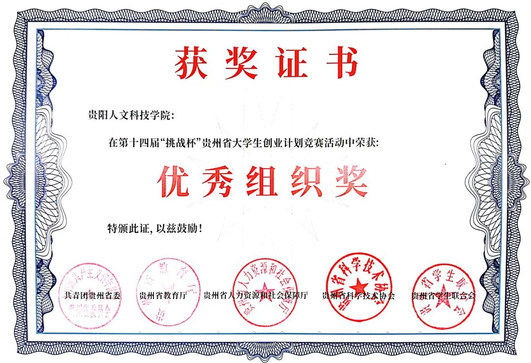 伟德官网在第十四届“挑战杯”贵州省大学生创业计划竞赛活动中荣获优秀组织奖!