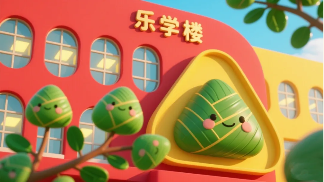当蝉鸣撞上端午的鼓点,校园悄然换上青翠的粽衣,屋檐垂落五彩丝线,连呼吸都浸透艾草的清新!