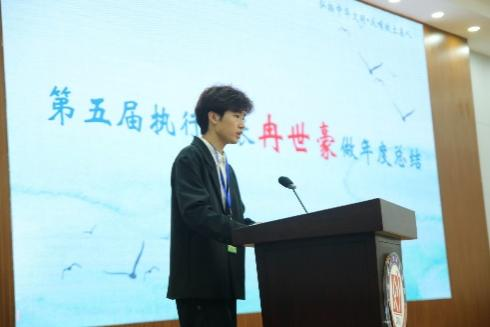 接着,第五届执行会长冉世豪同学作年度总结,他带领着大家回顾了过去一年中春晖行动发展协会工作的艰辛历程和取得的丰硕成果,对新一届春晖学生干部分享了很多宝贵经验,并对春晖行动发展协会的发展作了美好的展望。
