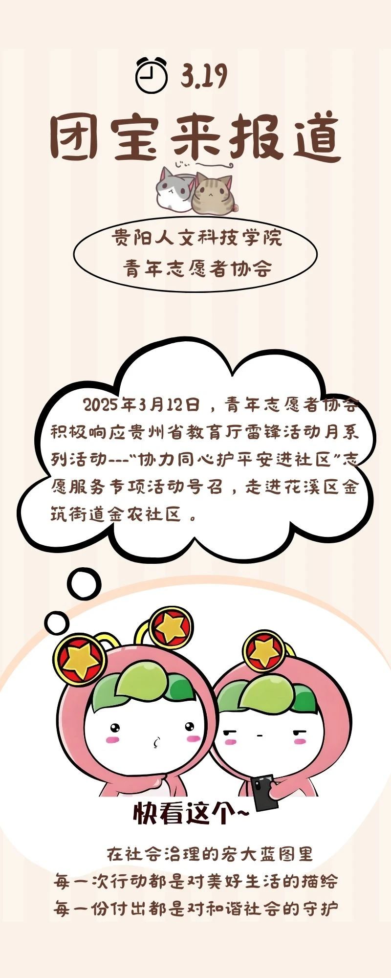团宝来报道:志愿微光净社区,平安共建暖人心