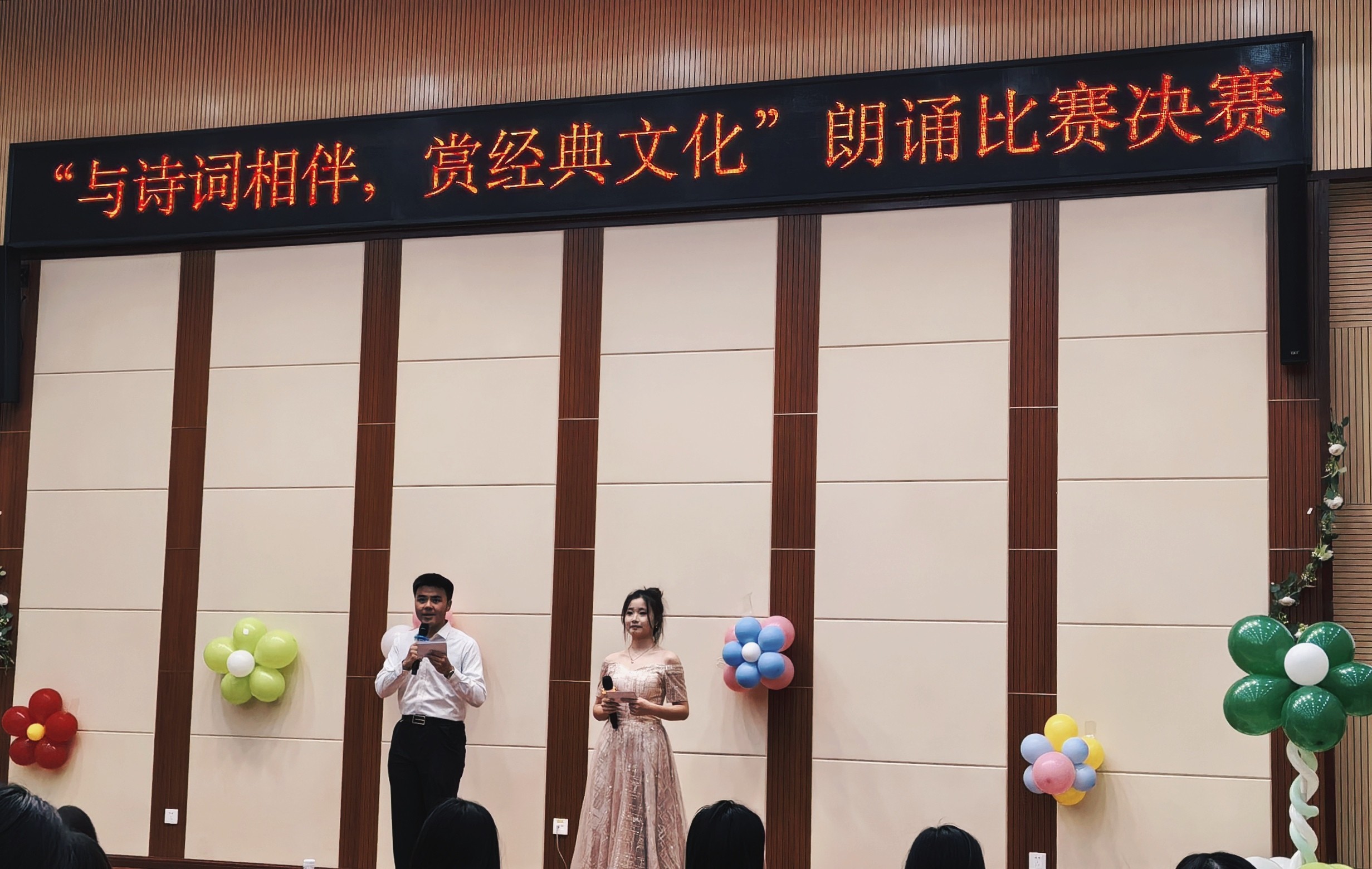 为弘扬中华经典文化,丰富校园文化生活,伟德源自英国始于1946图书馆联合校团委举办的“与诗词相伴,赏经典文化”朗诵活动决赛于2025年4月17日18:30在大学城校区图书馆二楼学术报告厅圆满举行。