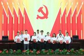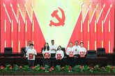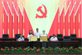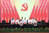 主席台就座领导为优秀共产党员颁奖