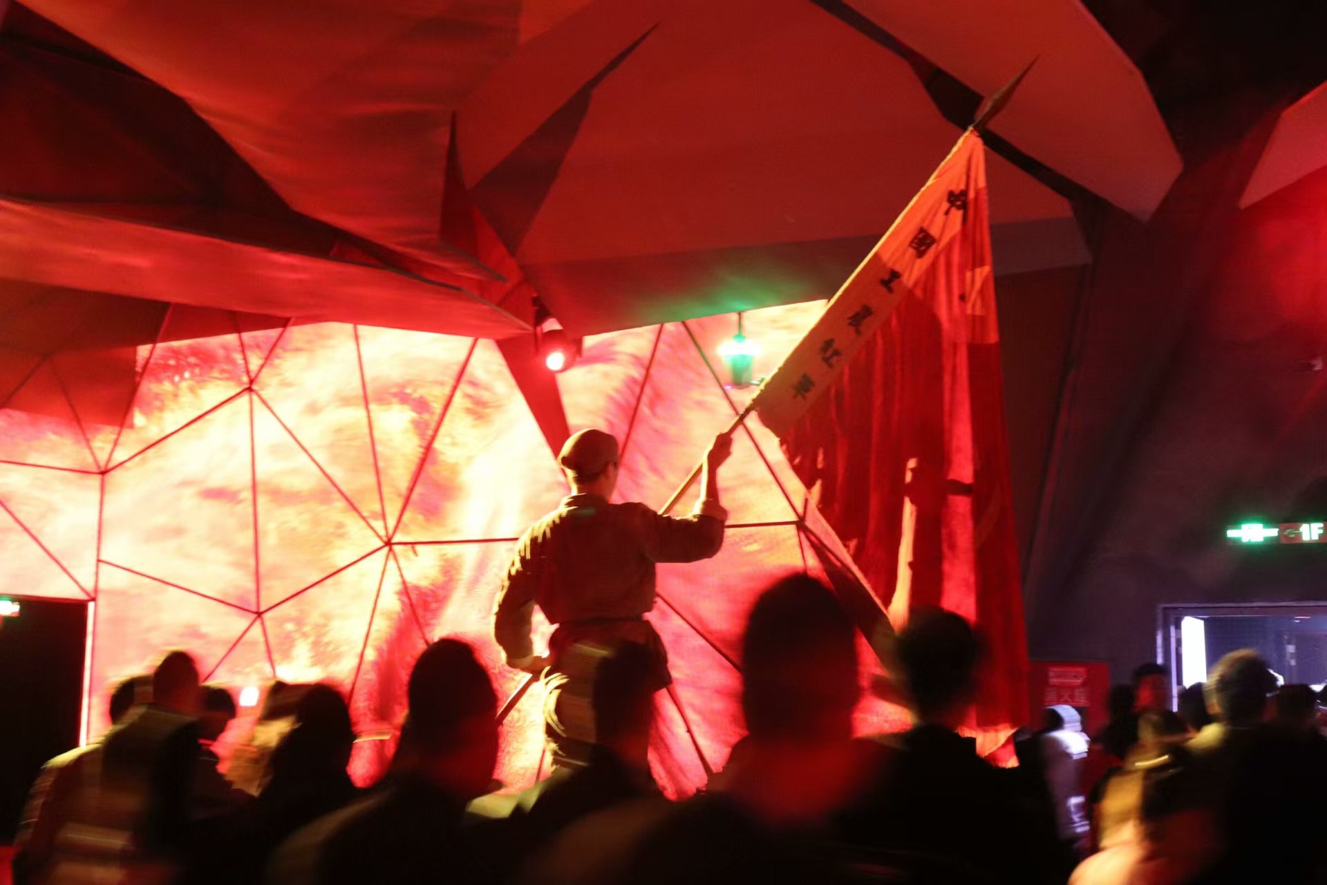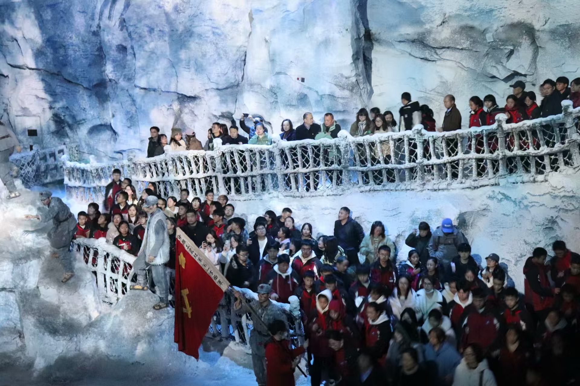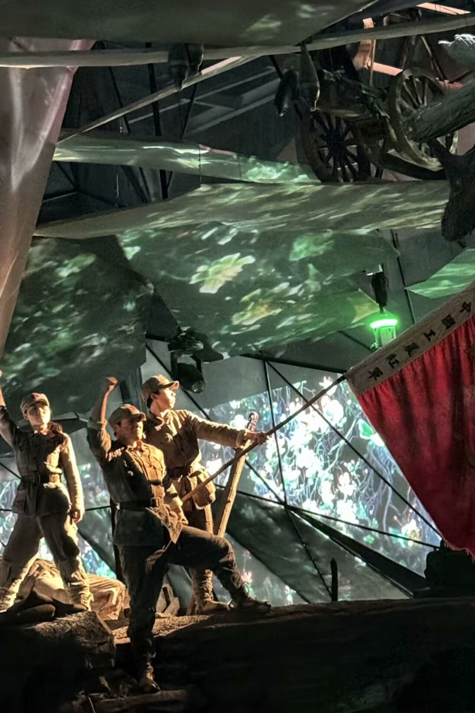 活动伊始,学生工作部的老师、易班工作站的学生们踏入了“红飘带”长征文化数字艺术馆。该艺术馆是全国首家聚焦长征主题的全域沉浸式数字体验馆,分为“无名英雄”“血火洗礼”“伟大转折”“砥砺征途”“胜利丰碑”“新时代新长征”六个篇章,场馆运用先进的数字科技手段,让在场的每一个人都仿佛穿越时空,重回那个战火纷飞的年代。