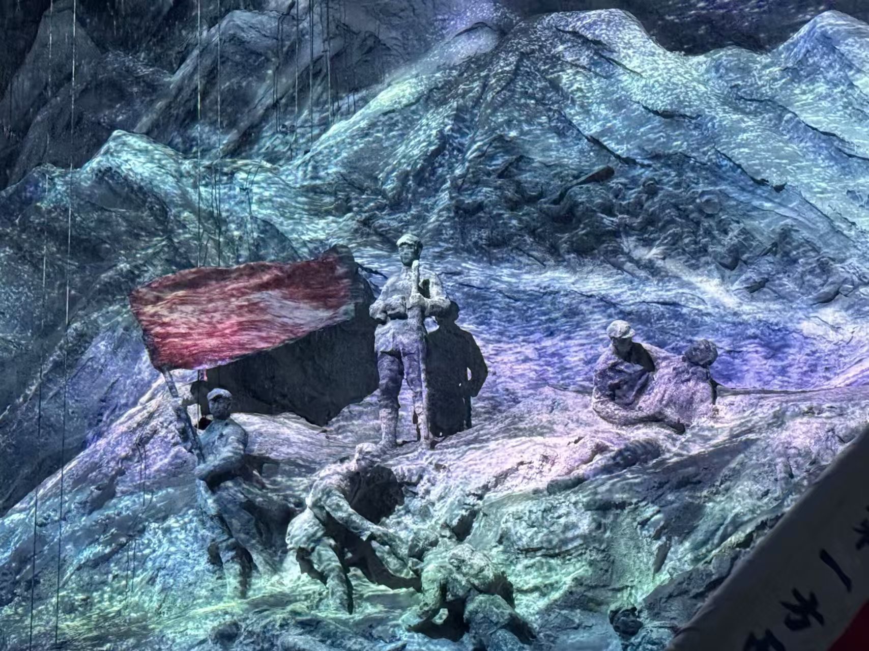 那马灯与红旗似革命火炬、雪山草地各有险难、那红飘带以鲜艳的红色,诉说着红军战士不屈不挠的精神。