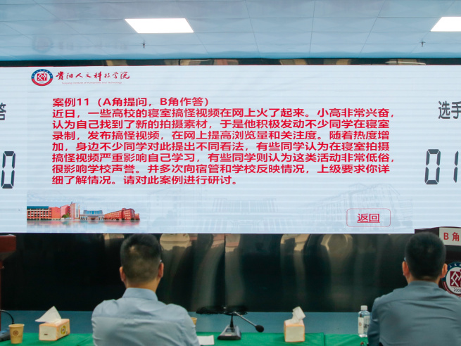 案例研讨环节聚焦学风建设、心理健康、党团建设、危机事件处理等学生工作典型场景。选手们通过抽签分组,以AB角互问互答的形式,共同辨析案例根源、探讨对策、凝练工作规律。该环节不仅考察了辅导员运用理论分析问题的能力,更生动展现了他们将政策语言巧妙转化为“学生成长密码”的实践智慧。
