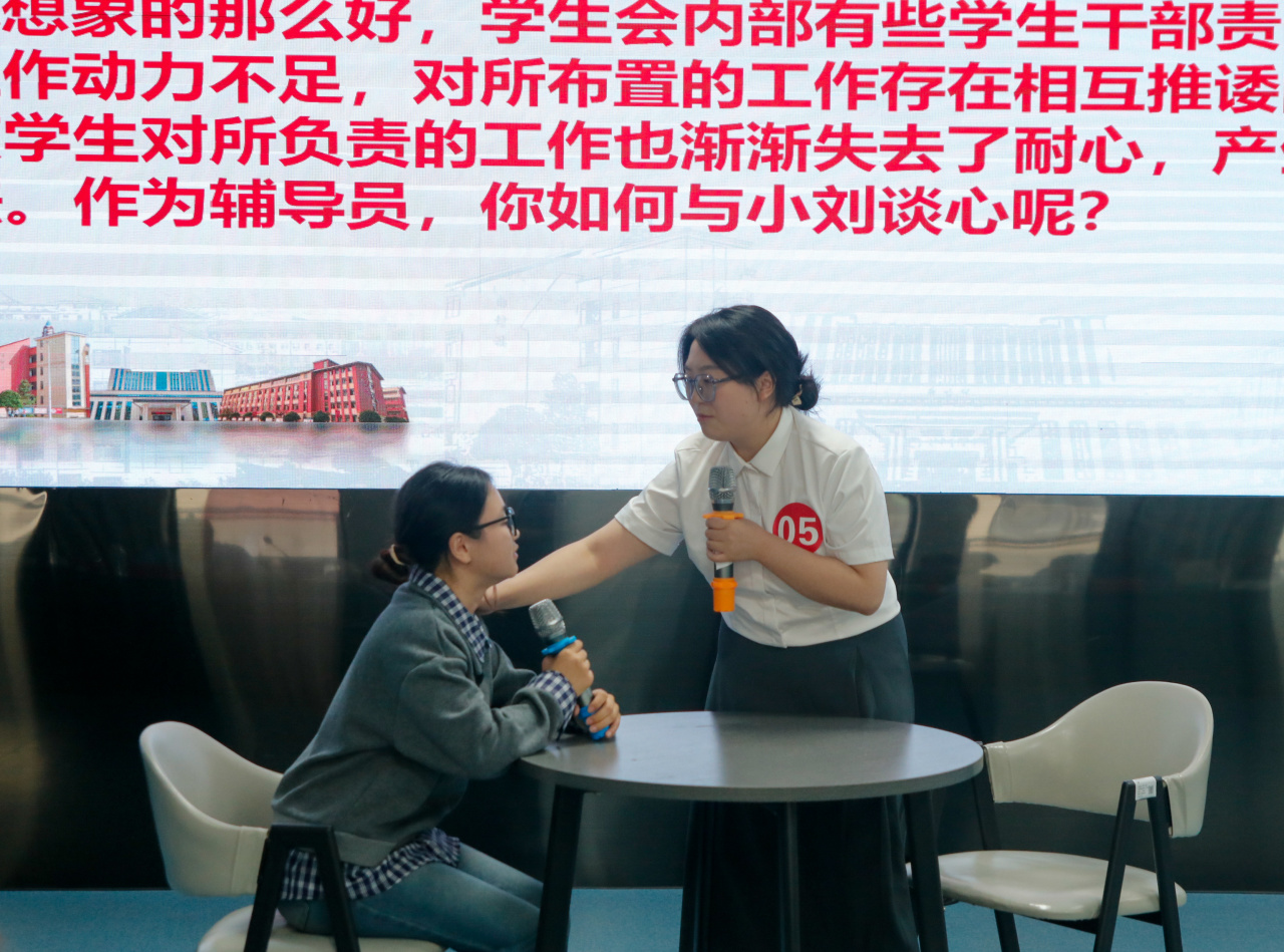 本届大赛历时两个月,经过各学院内部选拔,10名优秀辅导员脱颖而出,晋级校级决赛。决赛设置基础知识测试、案例研讨、谈心谈话三大环节,全方位检验辅导员的综合素质。